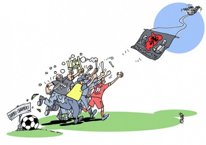 D’ailleurs, la politique ne s’est pas mêlée de ce match. Même si l’Albanie et la Serbie ont frôlé l’incident diplomatique à plusieurs reprises. À quelques heures du match, l’ambassadeur albanais avait été arrêté par la police serbe avant d’être relâché. Après arrêt définitif du match, les autorités serbes ont exigé de Tirana « une condamnation claire » de l’incident. Belgrade a accusé Tirana d’avoir commis une provocation préméditée. Selon les autorités et les médias serbes, elle serait l’œuvre du frère du Premier ministre albanais. Il est évident que dans les États modernes, c’est les proches des dirigeants qui s’occupent de ce genre de tâche… Le ministre serbe des Affaires étrangères Ivica Dacic a déclaré dans un communiqué « La Serbie attend des responsables albanais une condamnation claire de l’incident (…) comme premier pas nécessaire pour surmonter ce problème ». Pas un mot sur les inscriptions « le Kosovo est serbe ». L’ancien porte-parole de Milosevic, Ivica Dacic se garde bien de se distancer des propos racistes et des appels aux meurtres durant le match. Après tout la provocation reste albanaise.